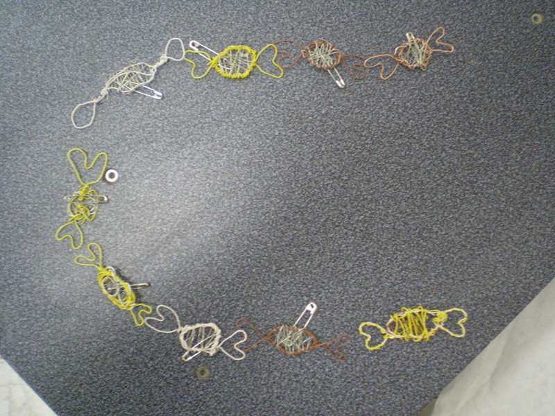 Nie je to nič zložité, náš cukrík si vyrobíme z drôtiku a pripevníme ho na zicherku (pripínací špendlík). Áááá, bude to :).