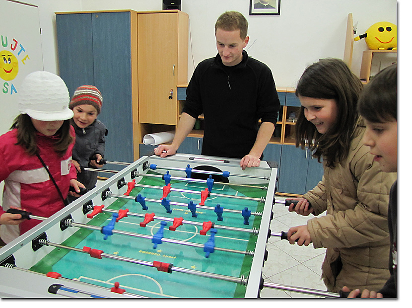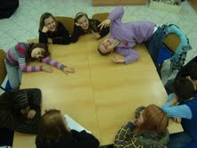 Začalo sa to mojim osobným príchodom pred klubovňu dňa 16.11.2010 o 15:05…podotýkam, že som meškala LEN 5 minút…:)…štyria najzodpovednejší členovia tam už stepovali…po chvíľke došiel už aj piaty člen, a tak sme sme vošli v počte 6 osôb dnu…:) Dozvedeli sme sa, že siedmemu členovi informácia o stretnutí nedošla, takže sme museli zvoliť plán B a napraviť naše zanedbanie…:) No a čo sa týka ôsmeho člena…riešili sme ťažkú situáciu, pretože jeho zdravotný stav sa pomaly zhoršuje…po lekárskom potvrdení diagnózy Alzheimerovej choroby sa u neho prejavuje aj závisláctvo…:) No ale spoločnými silami sme mu pomohli aspoň na chvíľu sa pozviechať a kým sme ho čakali (cca. pol hodiny…už s pridaným časom predošlých vecí) rozprávali sme sa o svojich zážitkoch z posledných dní…pravdu povediac…prevahu som mala ja…:)…stužková je veľká vec…:) Niektorí sa pritom zahrali aj kalčeto. Nakoniec sme sa už v plnom počte asi 10 minút fotili…:) Takže sa teším na ďalšie, pretože chcem zistiť, či sa polepšíme a všetci prídeme načas. Pomaly sa učíme…:)