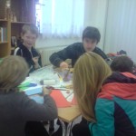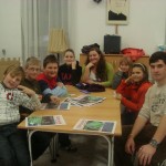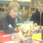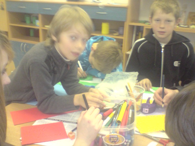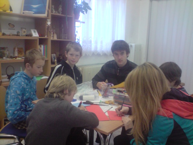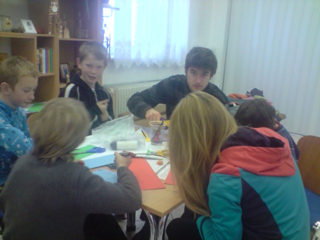 na toto predvianočné stretko sme si teda pripravili šikovné rúčky a spoločne sa hrali, majstrovali a smiali. Aby nám nebolo veľmi smutno prizvali sme si aj hosťa…Matúška D, lebo on taký zlatý ponúkol sa, že si nás vezme na starosť pri koledovaní. No verili by ste akú majú tí chalani charizmu? Normálne on taký šikovný všetky deti nám navnadil na koledovanie. A potom v dobrej nálade sme pokračovali v našom čarovaníí…tie vianočné pohľadnice sa nám pekne vydarili a aj keď sme boli v trošku stiesnených podmienkach dobrá nálada nechýbala…..to tak býva, keď viacerí robíme stretko v predposledný deň….no dobre nám bolo a aj bude na ďalších stretkách.